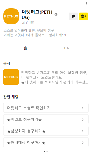 카카오톡 [더펫허그] 채널 등록 및 방법
